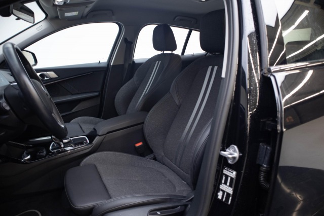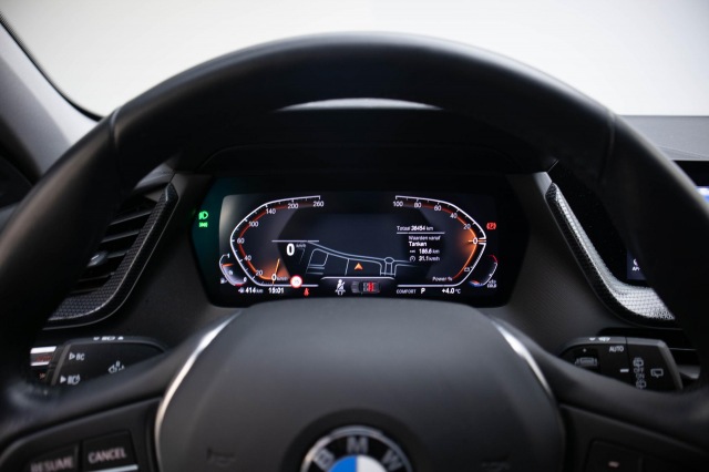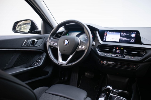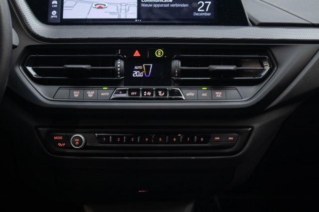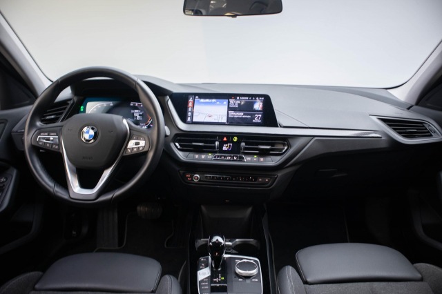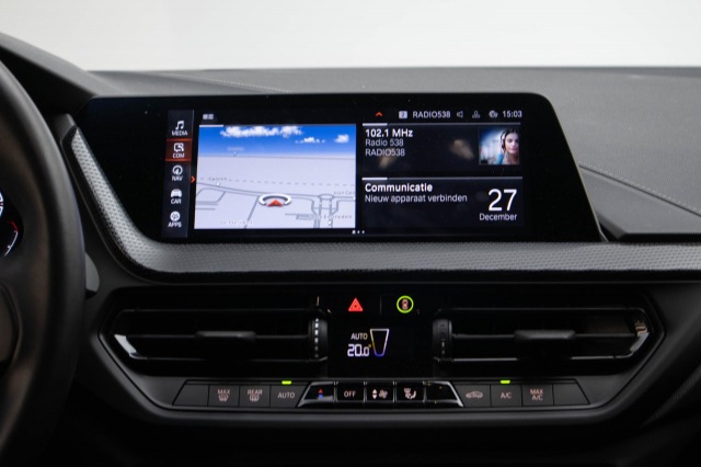 Omdat rijden een plezier mag zijn, staat deze BMW 1-serie enthousiast te glimmen in de showroom. Technisch in topconditie, strak in de lak... echt een droomauto! De aandrijving komt voor rekening van een benzinemotor en een automatische transmissie. Ziet er goed uit, die sportstoelen. Maar waar het om gaat, is de solide zit onder alle omstandigheden. Bij de zeer complete uitrusting van deze auto behoren ook 17 inch lichtmetalen velgen, LED koplampen, sport line onderstel, in delen neerklapbare achterbank, elektrisch bedienbare en verwarmde buitenspiegels en verwarmde ruitensproeiers.Deze auto gaat met je in gesprek. Hij vertelt met behulp van remote services alles over de status van diverse onderdelen en laat zich desgevraagd ook activeren. Gewoon via je smartphone. Je kunt het audiosysteem met DAB-ontvangst en het navigatiesysteem bedienen met de knoppen op het stuur. Bij het wisselen van rijbaan kan een dode hoek ontstaan waardoor achterliggers te dichtbij kunnen komen. De achteropkomend verkeer waarschuwing geeft in dat geval automatisch een signaal. De automatische airconditioning zorgt voor een behaaglijk klimaat in de auto. Parkeersensoren zijn een waardevolle toevoeging aan deze auto. De sensoren waarschuwen tijdens het parkeren en voorkomen schade aan de auto. Ook regensensor, sportstuurwiel en centrale deurvergrendeling met afstandsbediening zijn aan boord.