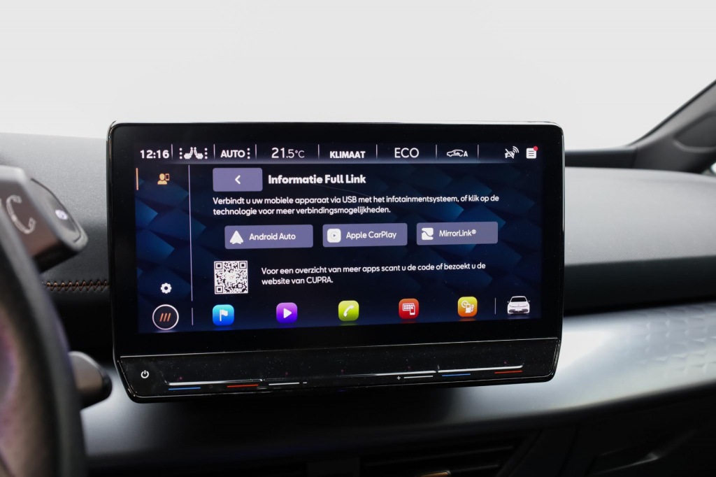 Begeef je op de geweldige rit door de digitale wereld van mobiliteit waar alles wat jij wenst voor comfort en veiligheid, wordt geprojecteerd op het digitale dashboard. Zodra je naar de 'R' schakelt, gaat de achteruitrijcamera in werking en heb je een perfect zicht op alles wat zich achter de auto afspeelt. Met adaptive cruise control houdt de auto zelfstandig afstand tot jouw voorligger. Een veiligheidsverhogende optie waarmee je comfortabel onderweg bent. Met de ingebouwde spraakbediening kun je de belangrijkste voertuigsystemen bedienen met stemcommando's. Appen met je auto? Geen probleem. Je kunt van overal contact opnemen, de functies controleren en activeren. Je bedient 'm met remote services. Je bent in deze CUPRA ook voorzien van full map navigatiesysteem, automatische airconditioning, DAB ontvangst, regensensor, automatisch dimmende binnenspiegel en centrale deurvergrendeling met afstandsbediening.