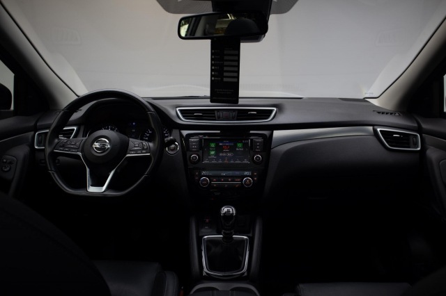 Je rijdt gemakkelijk, comfortabel en zonder zorgen met deze Nissan Qashqai. Met zijn benzinemotor en handgeschakelde zesversnellingsbak is dit een prima auto voor nog vele kilometers. Het comfort van de stoelverwarming geeft in koude dagen nét dat beetje extra. Natuurlijk behoren 19 inch lichtmetalen velgen, LED koplampen, aluminium dakrailing, elektrisch inklapbare buitenspiegels, extra getint glas en in delen neerklapbare achterbank ook tot de uitrusting van deze complete auto.De 360 graden camera kan het blinde vlek probleem van de achteruitkijkspiegel oplossen, waardoor ongevallen worden voorkomen. Adaptive cruise control is een comfortabele en veilige optie. Het systeem reguleert de snelheid en houdt automatisch afstand tot jouw voorligger. Het full map navigatiesysteem en het audio-installatiesysteem (met DAB-ontvangst!) bedien je met knoppen op het stuur of met gesproken commando's. Natuurlijk is er ook automatische airconditioning aanwezig. Geen parkeervak is te klein dankzij de assistentie van de parkeersensoren. De uitrusting van deze Nissan is met regensensor, keyless entry, automatisch dimmende binnenspiegel en lederen stuur en versnellingspook behoorlijk compleet.