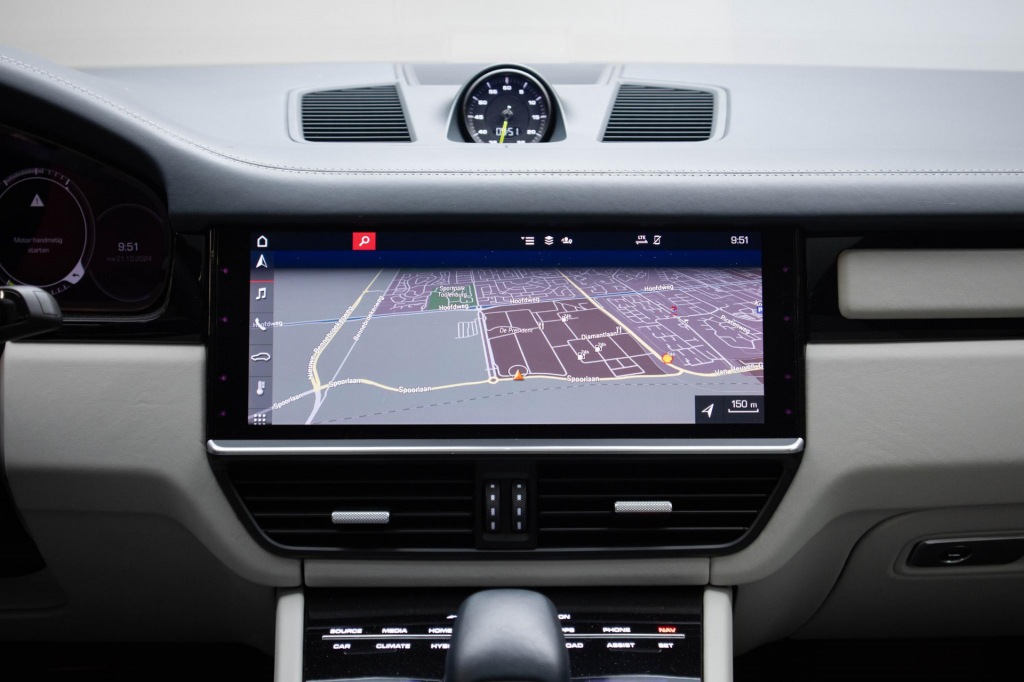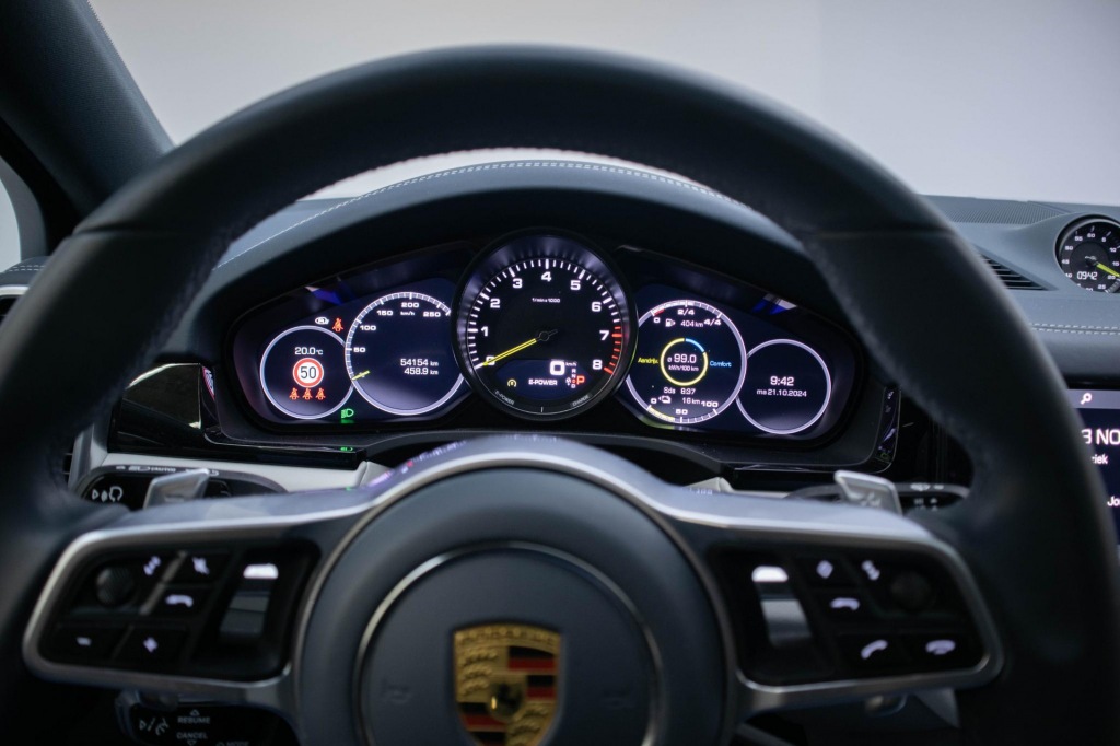 Geavanceerde technische systemen houden tijdens elke rit het verkeer in de gaten en reageren op potentieel gevaarlijke situaties. In het instrumentarium zie je tijdens de rit ook de belangrijkste verkeersborden aangegeven, die de auto automatisch voor je leest. Het Lane-keeping systeem garandeert dat je je niet onverhoeds buiten de lijnen van de rijstrook begeeft. Deze Porsche Cayenne Coupé blijft altijd alert. Zo wordt gebruik gemaakt van forward collision warning. Bij het mogelijke risico op een aanrijding met een voertuig voor u, slaat het systeem alarm. De auto is ook uitgerust met dodehoekdetectie, hill hold functie, brake assist en bandenspanningcontrolesysteem.
